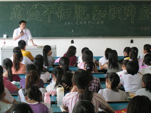 5月31日上午,护理学系“捐献造血干细胞知识讲座”在西教学楼103教室举行。邀请的专家是芜湖市中心血站的站长和造血干细胞捐献芜湖站的负责人,这是护理学系继五一二国际护士节“捐献造血干细胞志愿者报名”特别行动后的又一次特别活动。