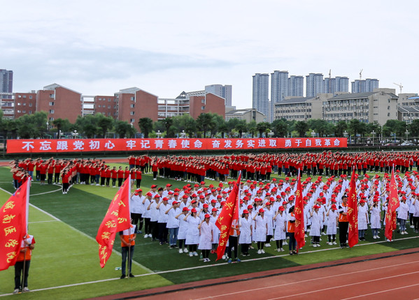 下午4时许,校田径场旌旗猎猎,出征的号角在耳畔回响。由660名皖医学子组成的“庆祝建校六十周年”八个大字,气势恢弘;服装统一的千名社会实践志愿者代表整装列阵,激情高涨。他们意气风发、众志成城,用青年学子最真诚的方式为母校六十周年献礼。