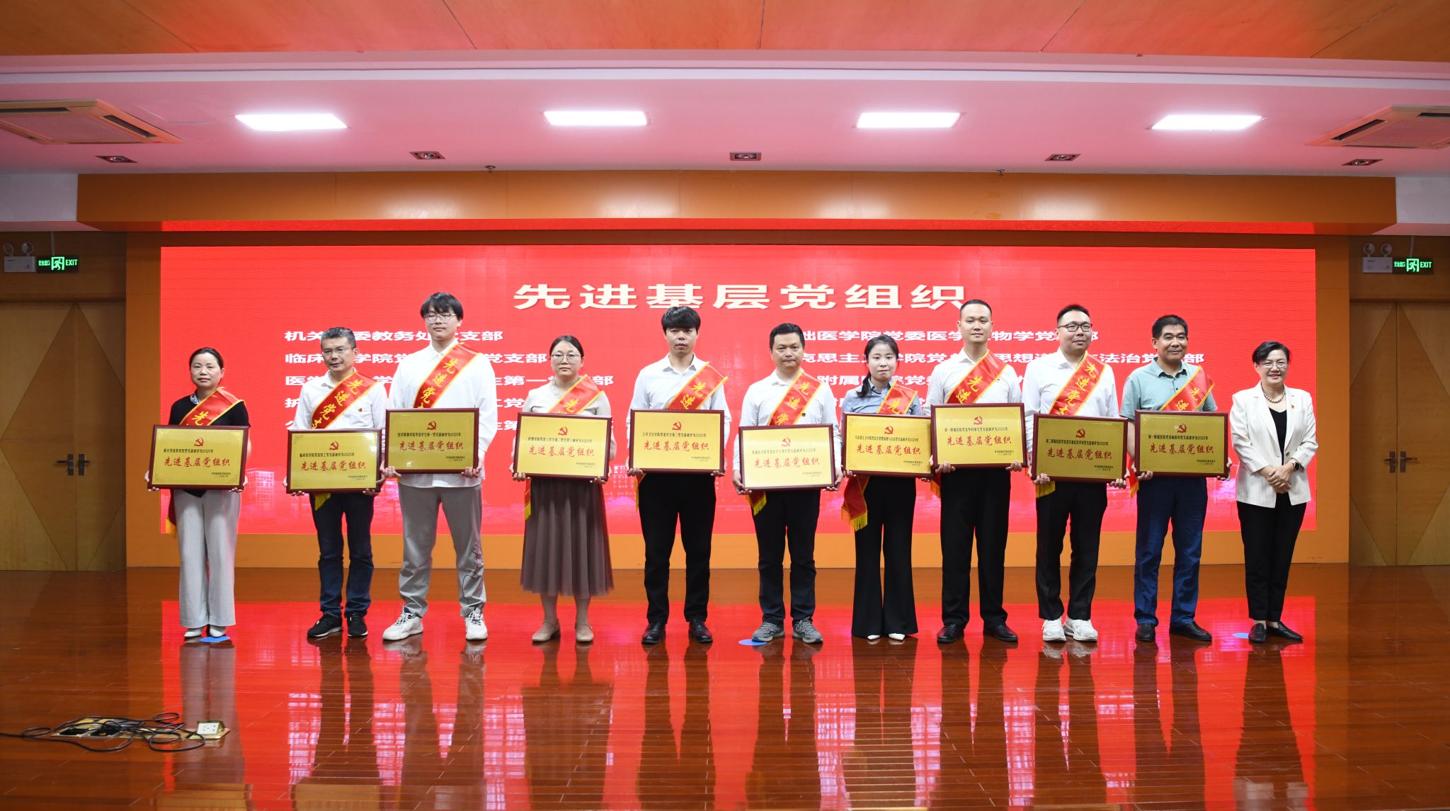 夏劲松作总结讲话。她代表学校党委向荣获"光荣在党50年"纪念章的老党员、老同志致以敬意,对受到表彰的先进集体和个人表示祝贺,并向奋战在学校教学、科研、医疗、管理等各条战线上的全体共产党员致以节日问候。她指出,过去的一年,学校坚持以习近平新时代中国特色社会主义思想为指导,统一思想、开拓创新、攻坚克难,推动事业发展迈出坚实步伐。希望全体党员保持干事创业的精气神、昂扬向上的好风貌,全面开启高水平医科大学建设的新征程。