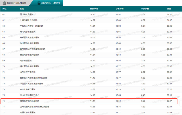 7月6日,中国医学科学院发布2022年度中国医院/医学院校科技量值(STEM)暨五年总科技量值(ASTEM),第一附属医院各有8个学科进入2022年度科技量值全国百强、五年总科技量值全国百强,入围学科数分别在全省医疗机构中排名第四和第三。