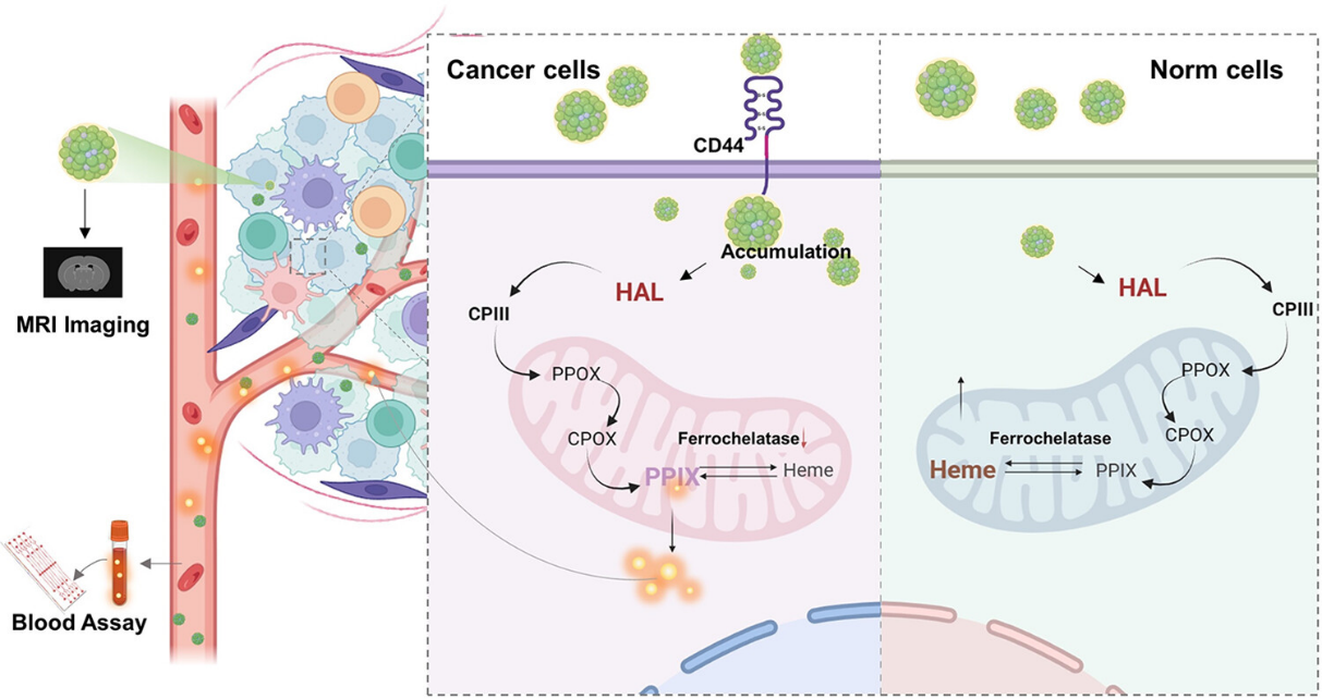 移动癌症筛查和肿瘤成像的多模式纳米传感器工作原理示意图